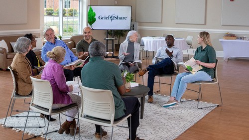 At a weekly GriefShare meeting, you will view a video featuring respected counselors, teachers, and healthcare professionals on grief-related topics. After that is a small-group discussion for sharing, support, and personal application of what you learned on the video. You will receive a free book to take home filled with valuable exercises for navigating your personal grieving process.